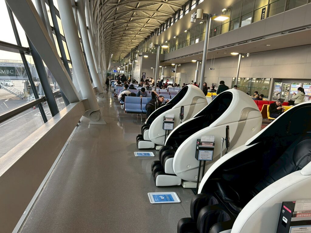 15番搭乗口の近くにマッサージ機があったので、そこで疲れを癒し(300円)、香港に向けて出国しました。長期フライトに向けて体のコンディションを整えられたのは有難かったです。